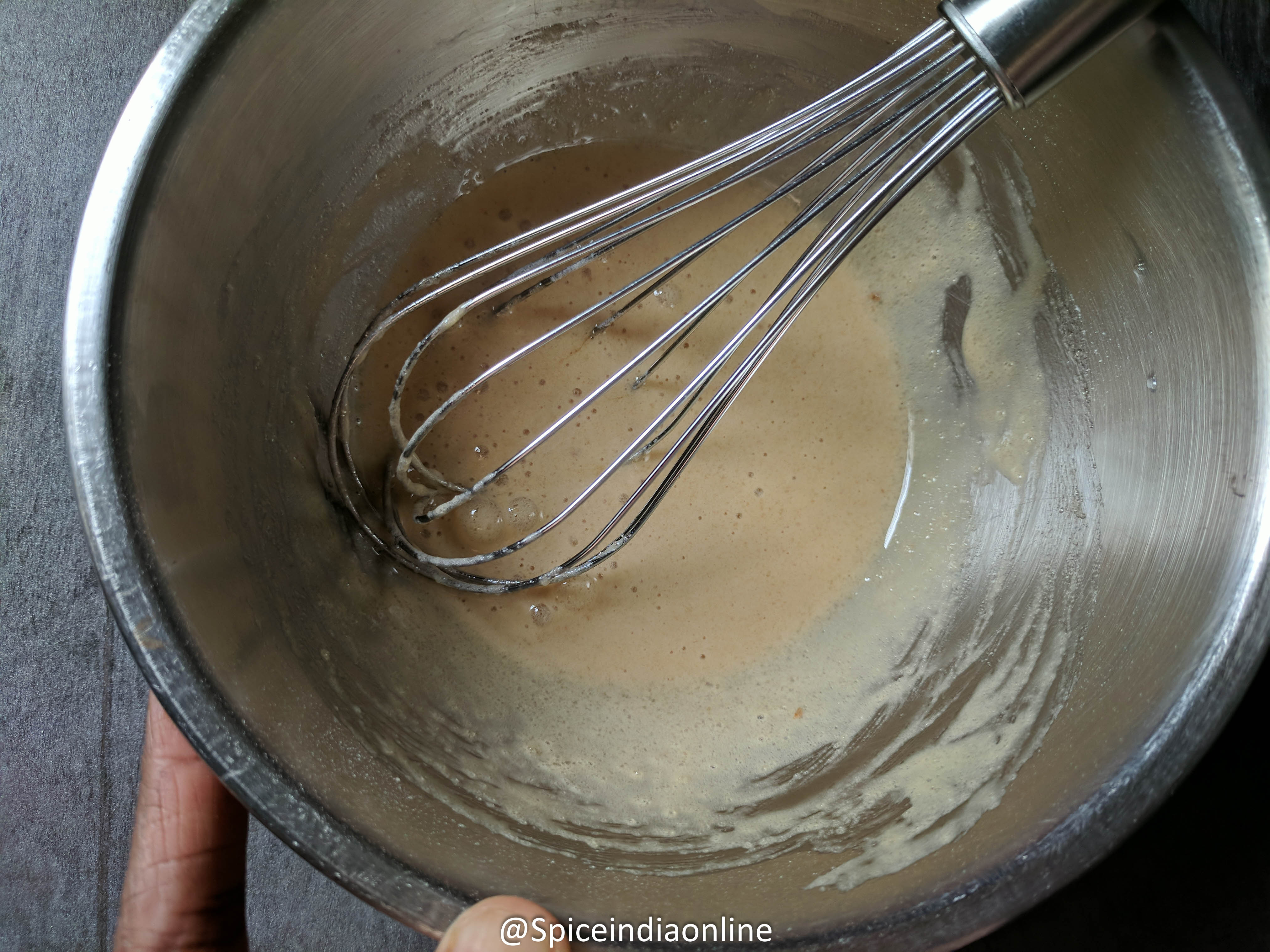 Whisk for few minutes until the becomes foamy and light.