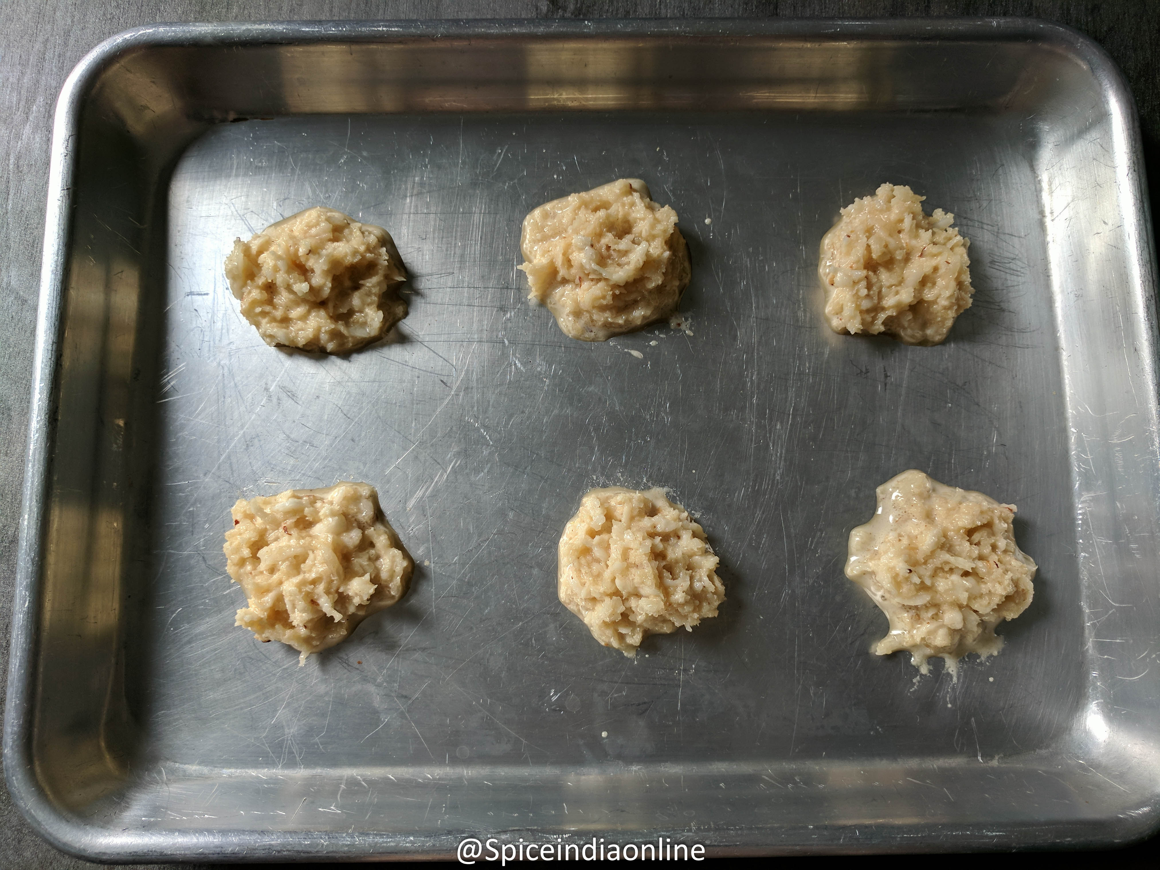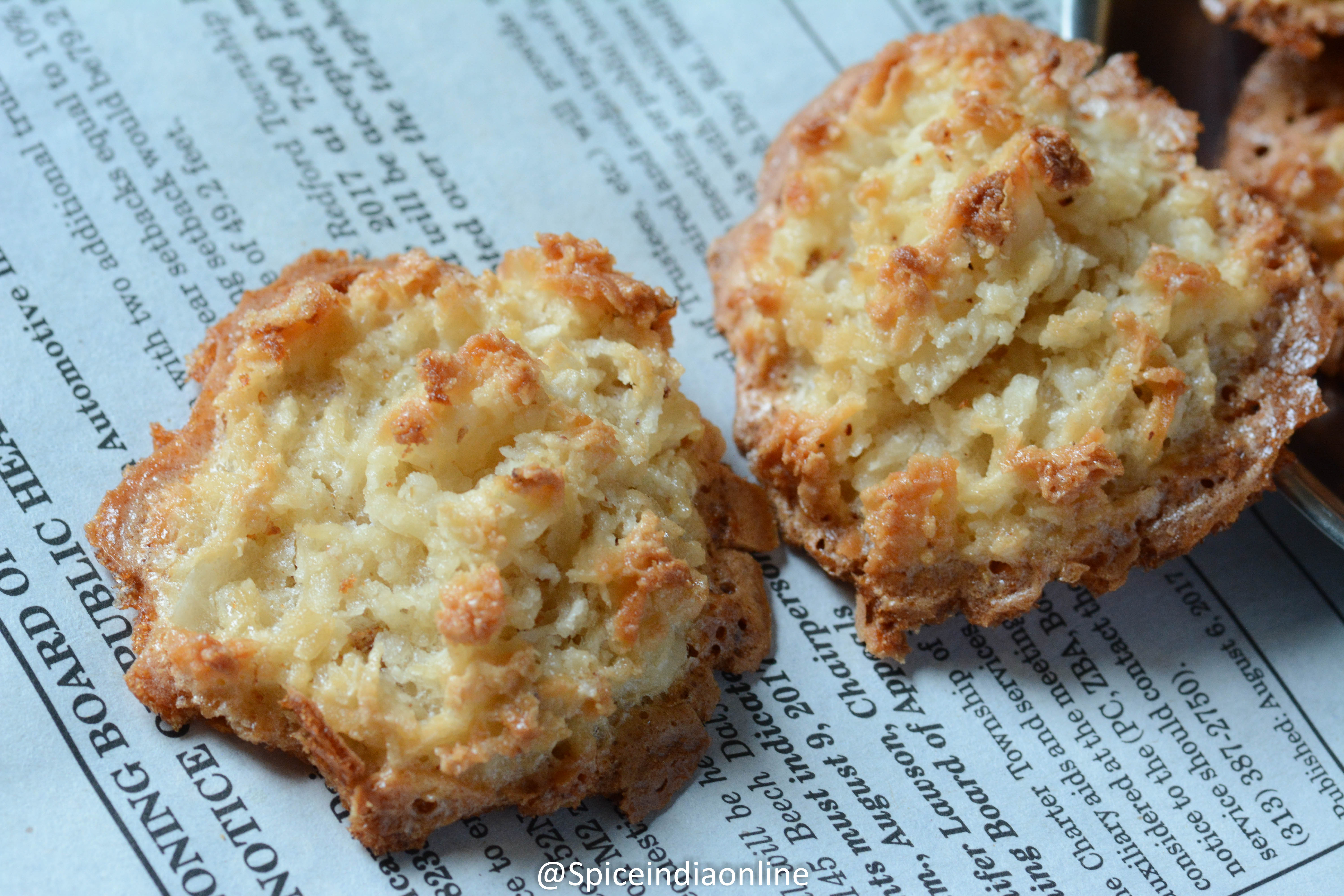 Tea Kadai Thengai Biscuit anyone??? nostalgic snacks haunts me now andthen and this one was on my list for a very long time… coconut macaroon may be a fancy term for these cookies but “thenga biscuitu” is what we use to call it back during my childhood days.. This is slowly disappearing from tea kadai’s, also bakeries sell more fancy western pastries and these 70s, 80s snacks are totally forgotten…& only available only in few village tea kadai or bakeries . I can never get this here in USA and had to make a batch to treat myself! Here you go…. please do share a click if you happen to try these.