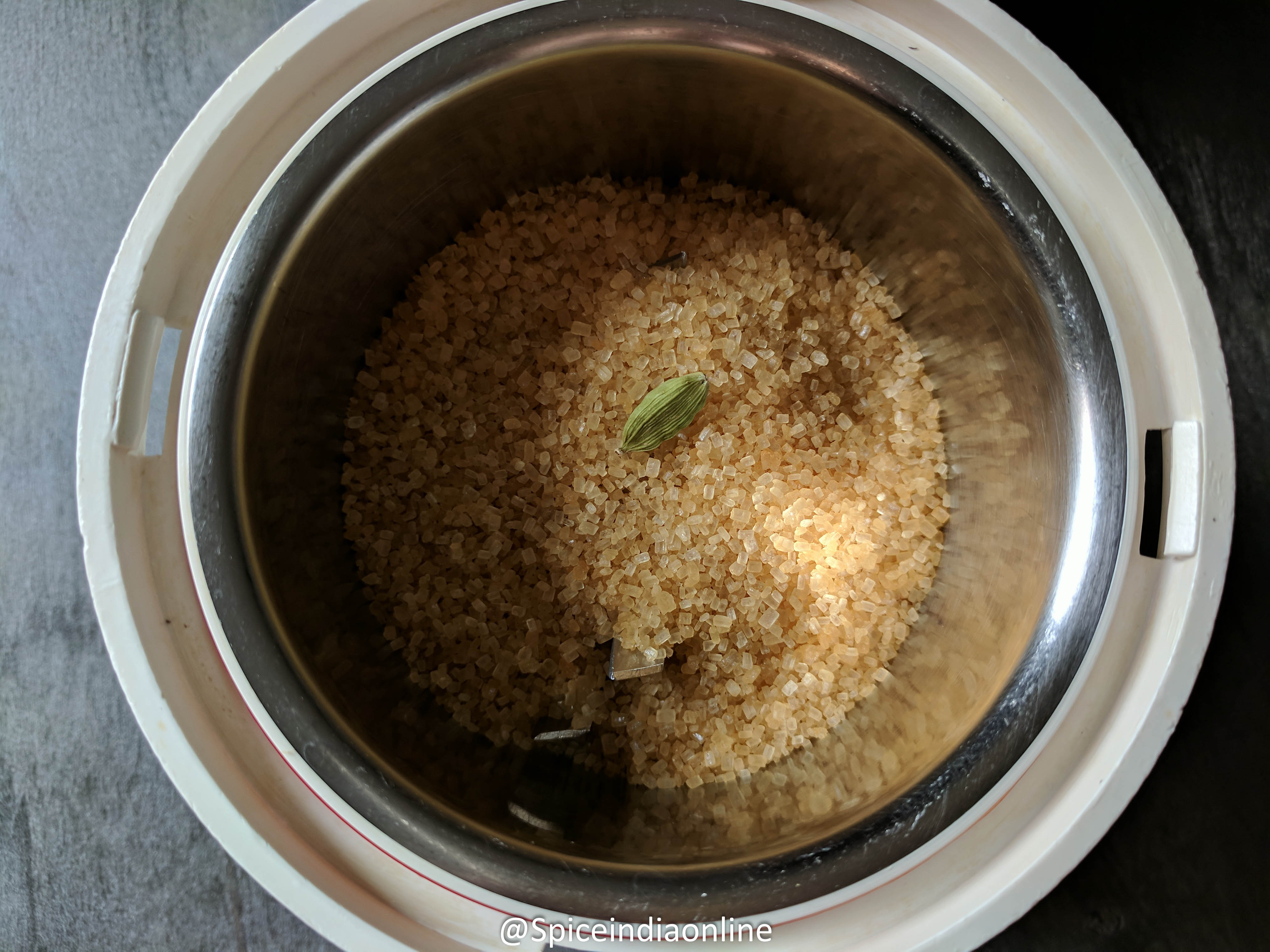 Mean while add in one cardamom to regular sugar.