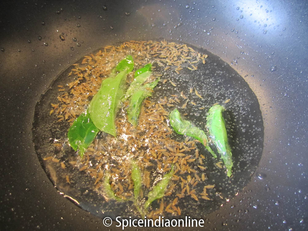 Wash the tindora / kovakkai / ivy gourd in running water, remove all the dirt. Chop a little on either sides and then cut them into desired shape. You can either cut them into thin rounds, vertical cuts, chunks, or thin slice… whichever way you prefer. Keep them aside. Grate some fresh coconut and keep it ready. I’ve  have made with leftover rice, if you don’t have cooked rice then cook some and cool them.  Heat oil in a kadai, splutter cumin seeds & curry leaves.