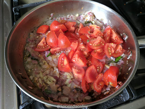 Now add in the chopped tomatoes and cook for some time.
