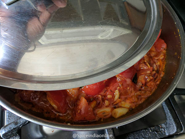 Bring down the flame to low, cover with lid and cook for 10 minutes.