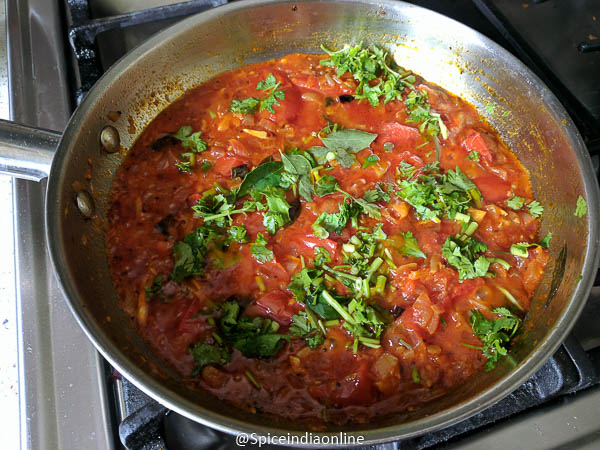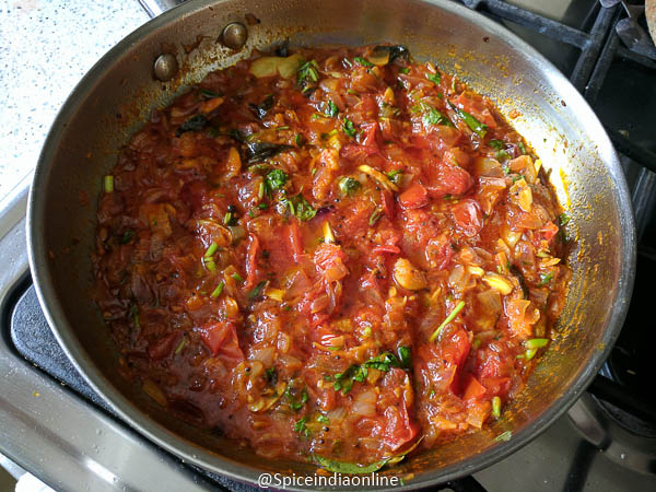 Once its done, the tomatoes gets cooked perfectly to a mushy taste… the oil will separate on top. Switch off and garnish with coriander leaves.