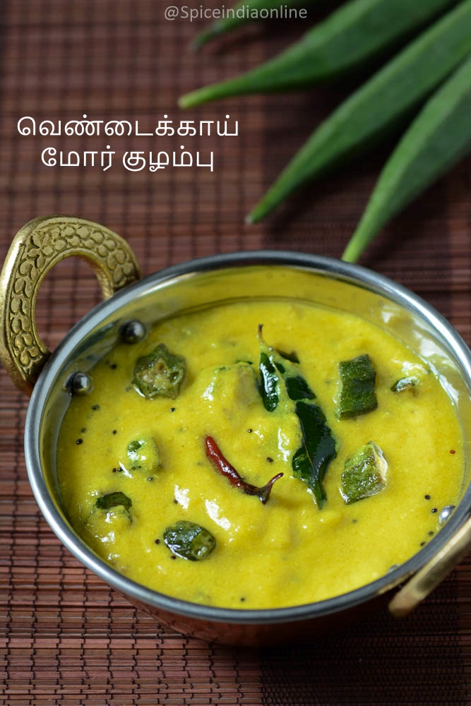 வெண்டைக்காய் மோர் குழம்பு, Vendakkai Mor Kuzhambu, How to make Mor kuzhambu, More kuzhambu recipe, mor kulambu recipe, south indian mor kuzhambu, vegetarian gravy, accompaniments, kuzhambu recipes, gravy for rice, festive recipes, Tamil brahmin recipes, tamil recipes, okra mor kuzhambu recipe, ladys finger mor kuzhambu recipe, vegetarian curry, vendakai, vendakkai recipes, vendakka more kuzhambu