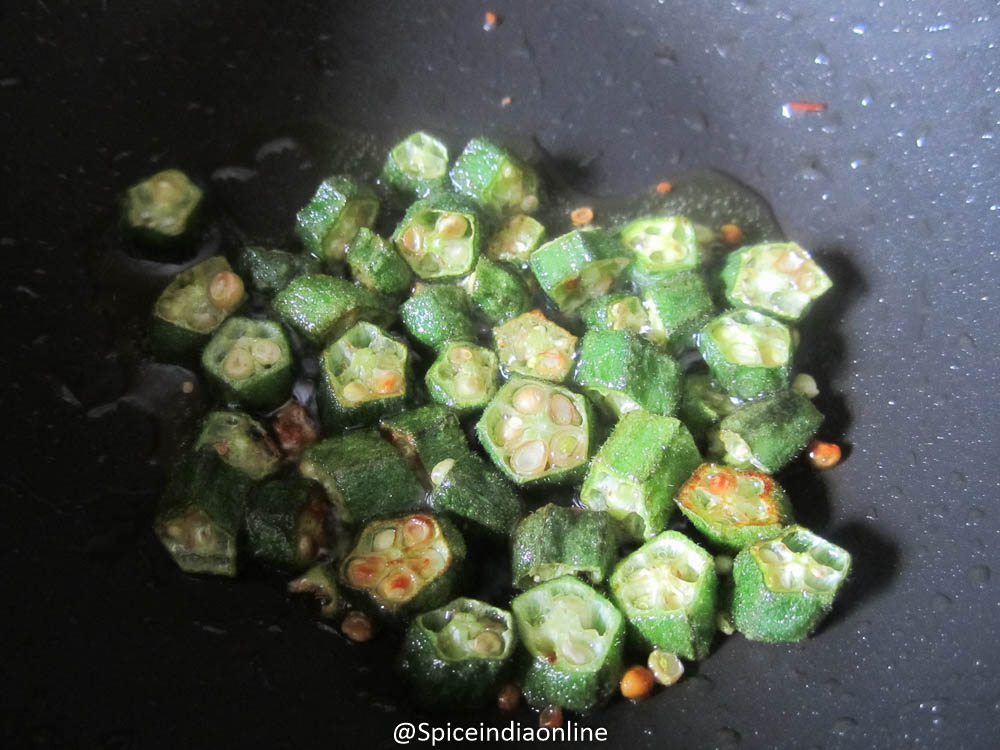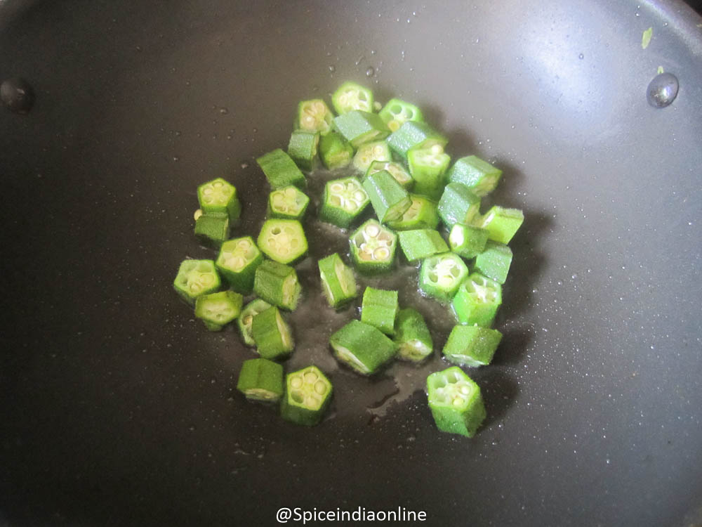 Cut the ladys finger / okra into bite size pieces and saute it with little oil.