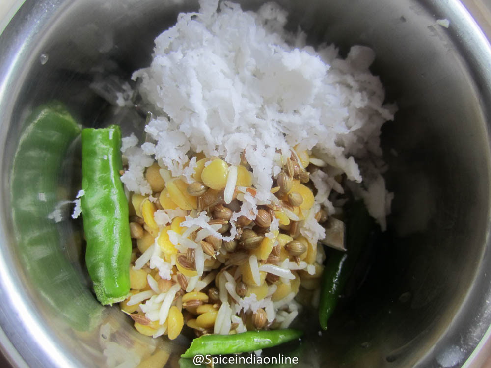 Using little water grind them to the fine consistency along with green chilies and grated coconut.