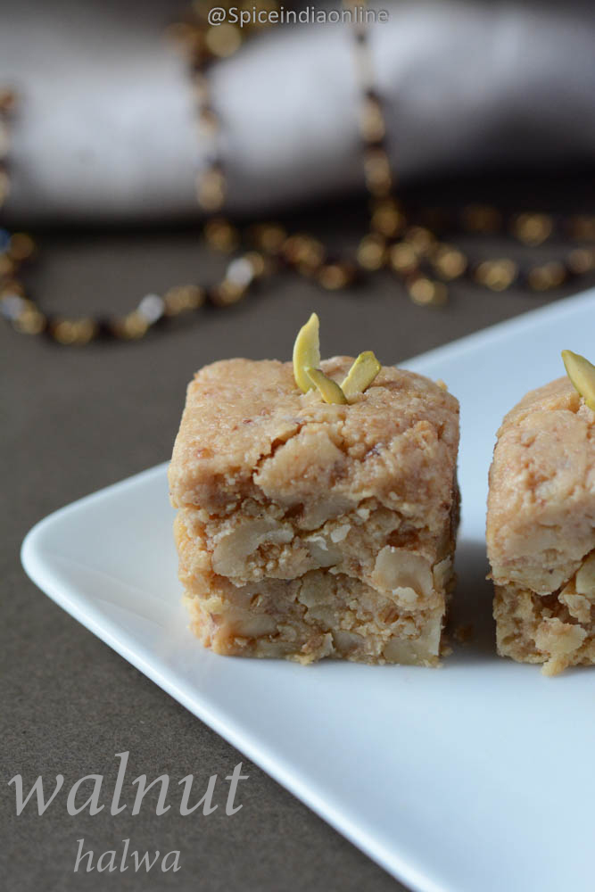 Wishing all my readers a very Happy New year! Getting back to routine after a long holiday break with a sweet recipe to start the New Year. Holidays are always great…Family, Friends, Fun and of course Food -that is all i can think of…. we had quite a lot this break and one of them is this super delicious rich Akhrot halwa.